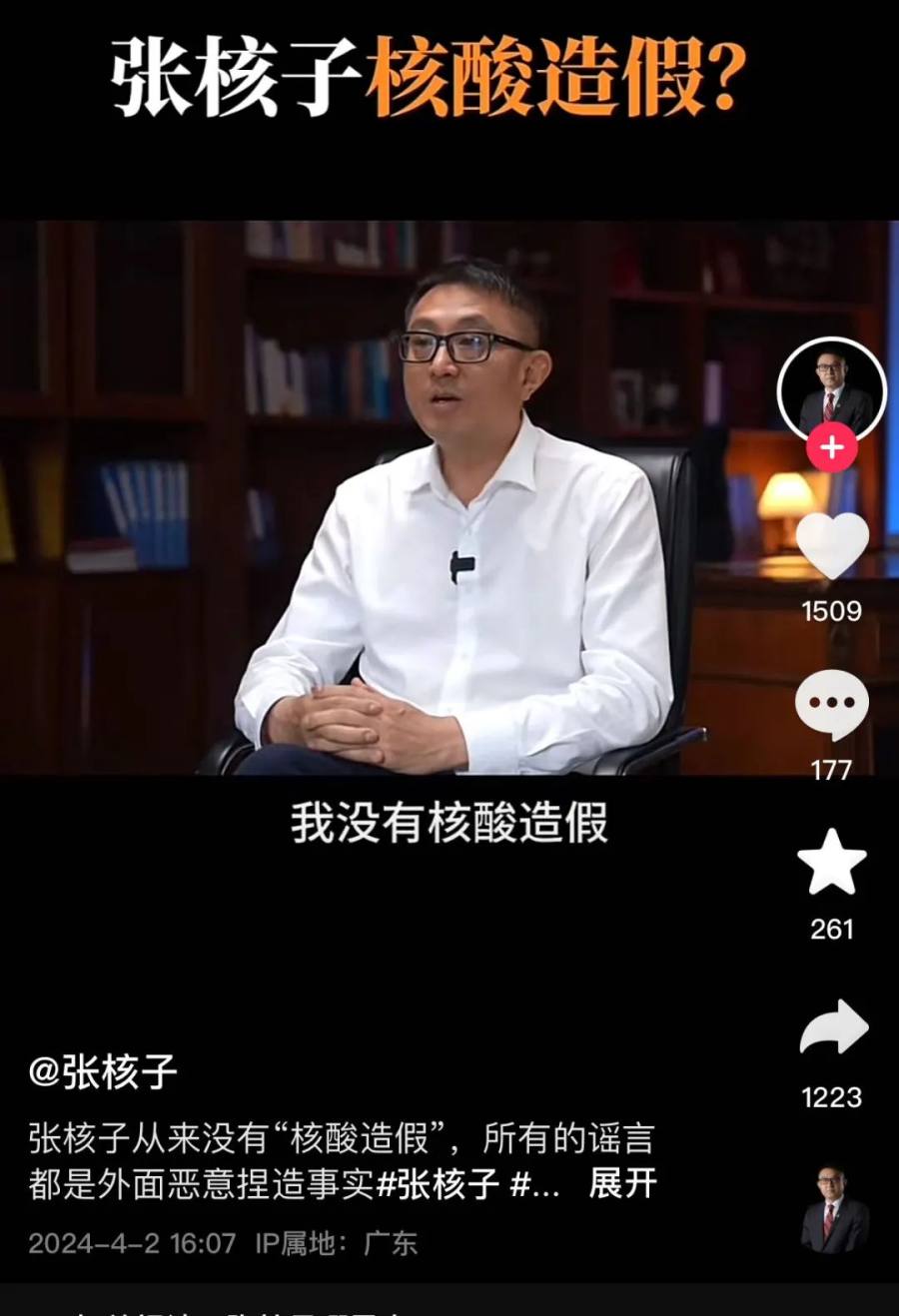 对于当年“核酸造假”的质疑,张核子在视频中再次辟谣。
