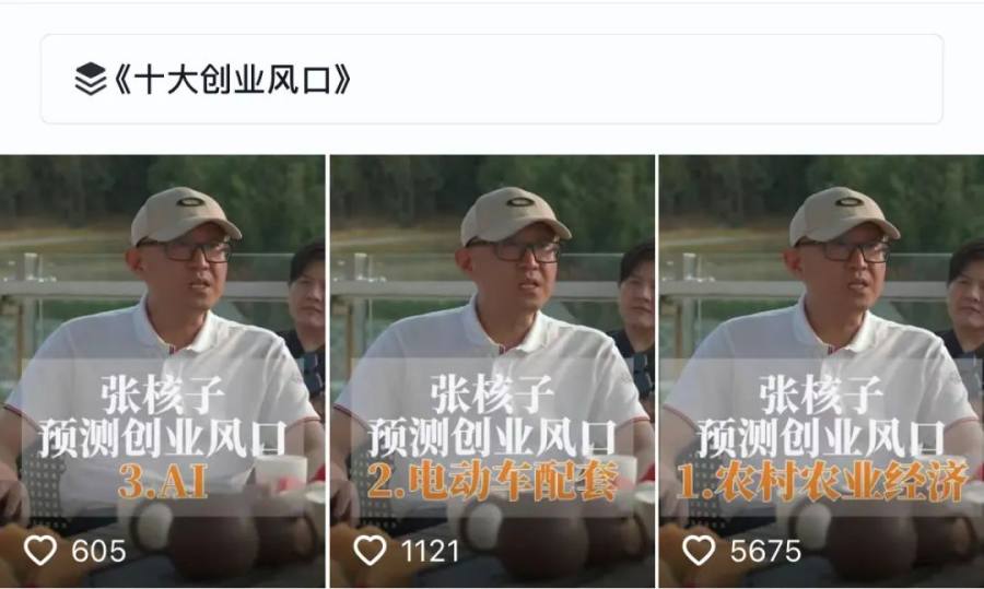 最新的几个视频,张核子没有再辟谣了。而是分享了对创业风口的看法,开了一个“十大创业风口”的专题。