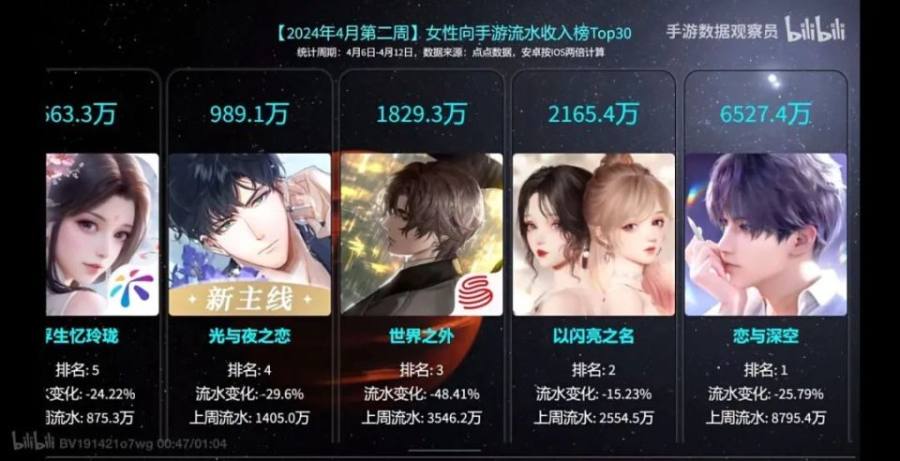 流水说明一切,《恋与深空》与《世界之外》毫无疑问成为了2024年开年国乙的大热门。