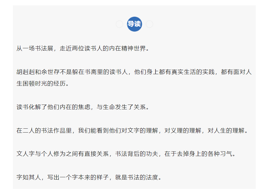 “余世存的字平实而羞怯,胡赳赳的字给人一种禅机的感觉,斩钉截铁,十分痛快。”