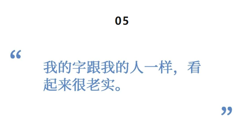 “我的字跟我的人一样,看起来很老实,很正。”