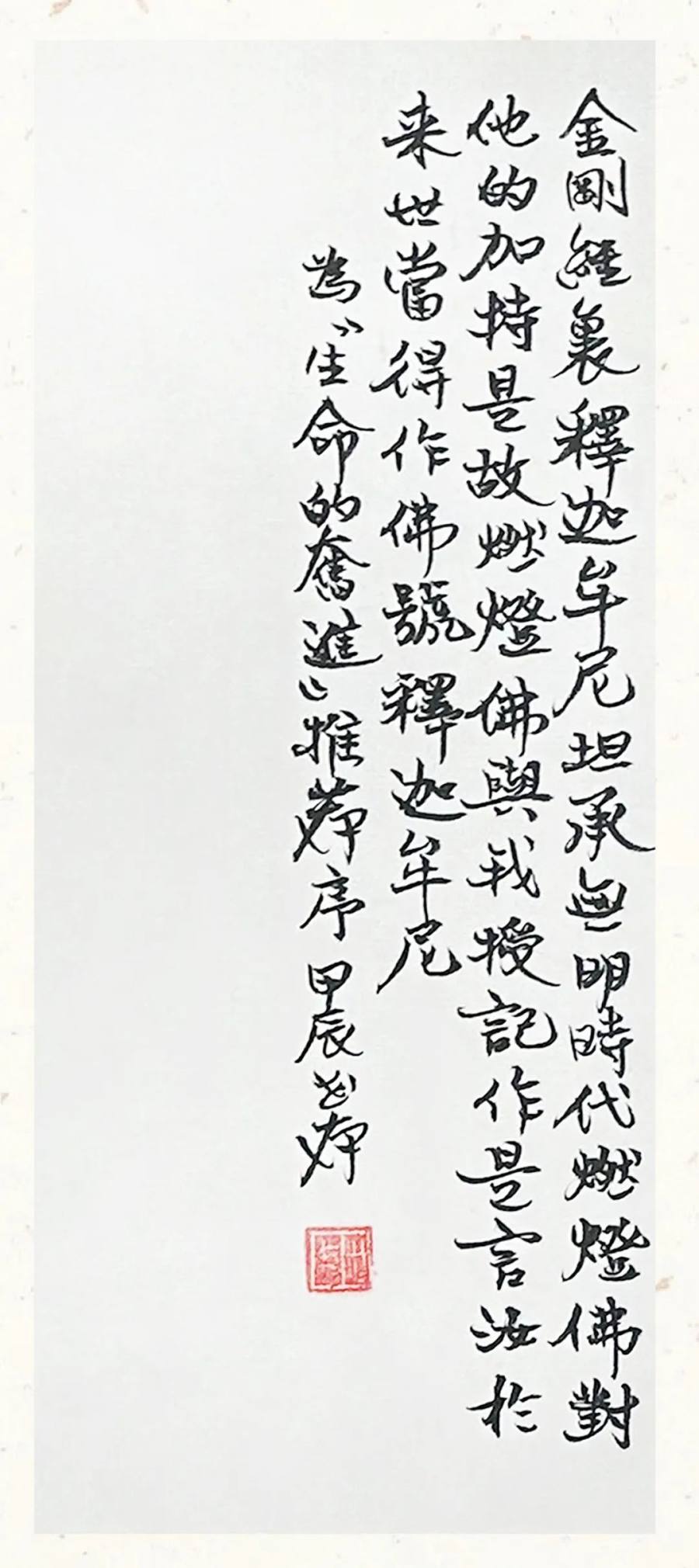 《金刚经》是余世存多年持续研读的一部经典,这次展出的作品,有余世存抄写《金刚经》的原句,也有他过往文章里提到《金刚经》的句子。