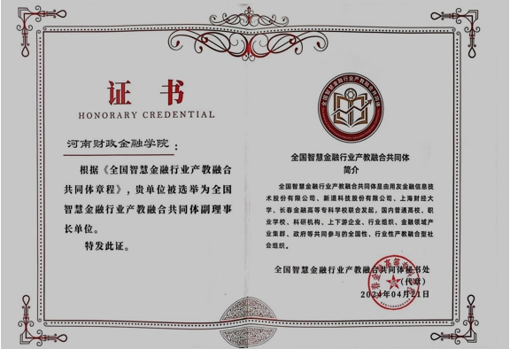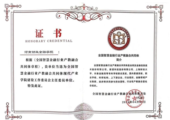 河南财政金融学院当选全国智慧金融行业产教融合共同体副理事长单位