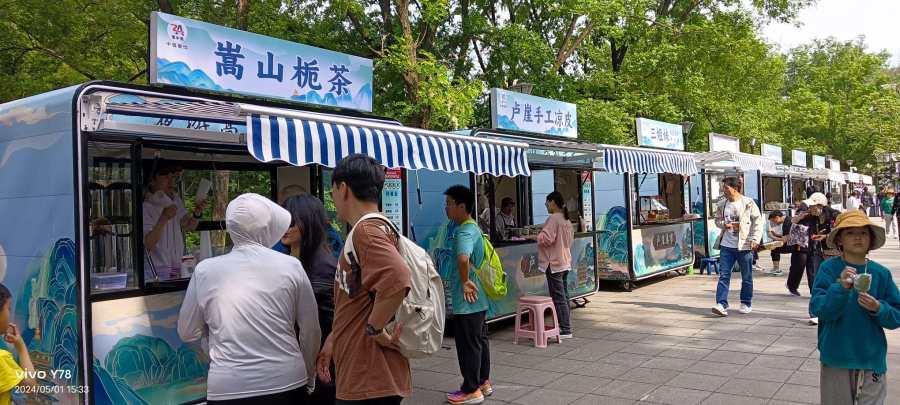 “五一假期,为服务好中外游客及夜游嵩山的游客,我们中奥餐饮联合卢崖瀑布风景区倾力打造了卢崖集市,使游客在登封既可以观美景、赏夜游,更能够品美食。”中奥餐饮负责人邵见中说。