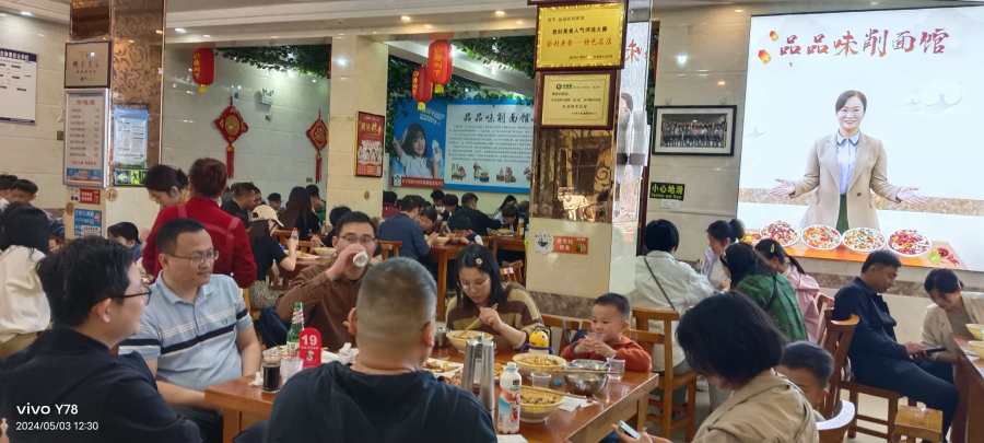 “五一黄金周,为服务好到登封旅游的各位游客就餐,我们高伟刀削面也在我们总店西100米开设了二分店。”登封市高伟刀削面店负责人说。