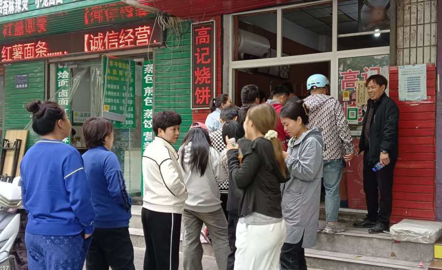 “今天到登封旅游,知道登封烧饼是特产,问了好几位路人,他们都推荐这家少室路口的中岳高记烧饼,登封的少林功夫很厉害,登封的芝麻焦盖烧饼也是有点功夫的,一掌能劈断!满满一层芝麻,夹点豆腐串,淋上灵魂辣椒,真好吃!”游客王女士表示。