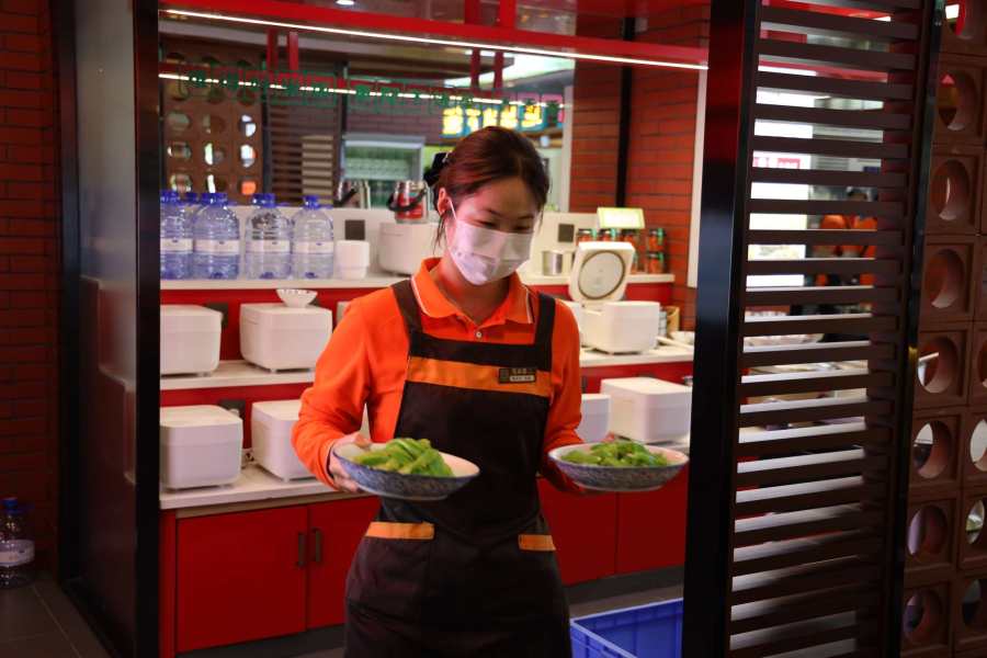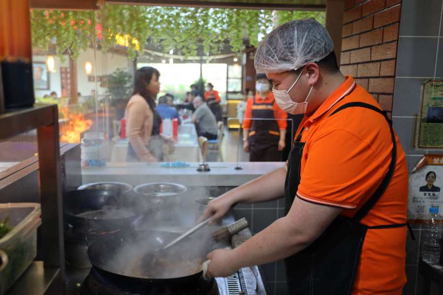 走进郑州武记餐饮旗下的豫丰汇河南名菜楼、武记红色年代、阿峰家-老长沙下饭菜、南菜园-重庆江湖菜,工作人员正在有条不紊地工作着。