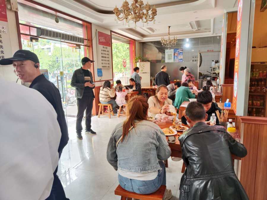 “不仅是店内的餐位,店外的外摆位也都全部坐满,许多食客都是从外地专程赶来的。”登封市中岳宴福楼酒店负责人张国强说,为了迎接五一,店铺提前在食材和人力上都做了充足准备。
