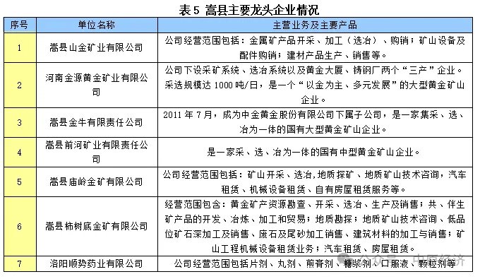 嵩县龙头企业主要围绕其主导产业金钼氟新材料。2020年,嵩县山金矿业有限公司实现税收9000万元,被人力资源和社会保障部评为“全国黄金行业先进单位”。河南金源黄金矿业有限公司、嵩县金牛有限责任公司、嵩县前河矿业有限责任公司、嵩县庙岭金矿有限公司、嵩县柿树底金矿有限公司5家企业税收均超千万元(见表 5)。