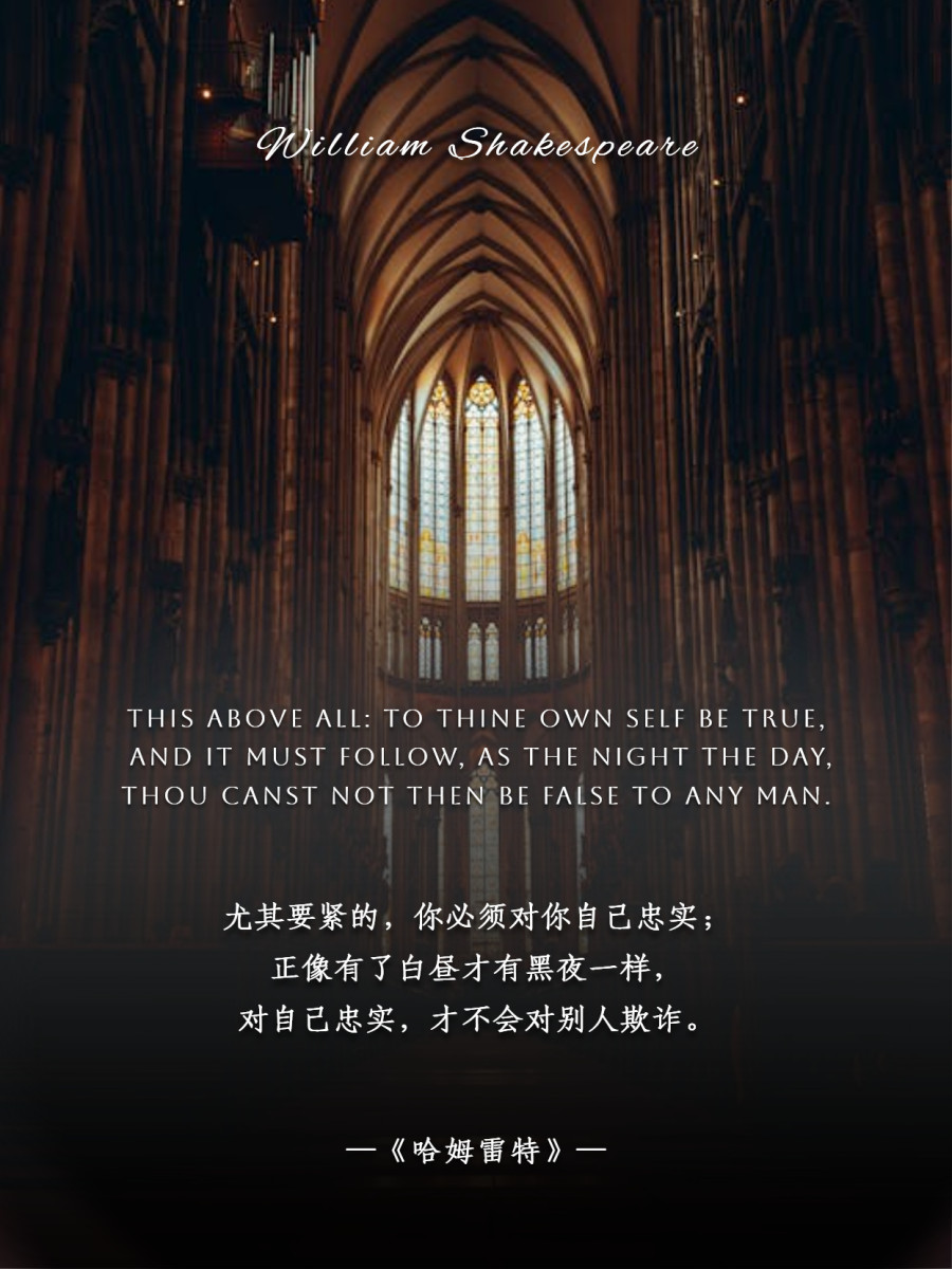 尤其要紧的,你必须对你自己忠实;正像有了白昼才有黑夜一样,对自己忠实,才不会对别人欺诈。