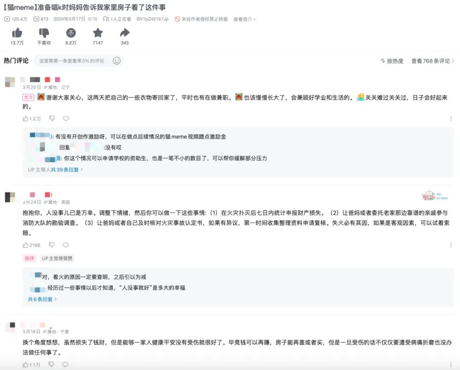 在很多猫meme vlog的评论区,没有道德制高点的指责、也没有无止无休的争吵和质疑。更多的是,对博主的遭遇表示同情、温暖的鼓励,以及借此机会说出自己曾经遭遇的不好的事情。难怪会有网友表示,“猫meme真的是现在戾气横生的互联网上罕见的比较善意的梗了”、“赛博时代独有的温度”。
