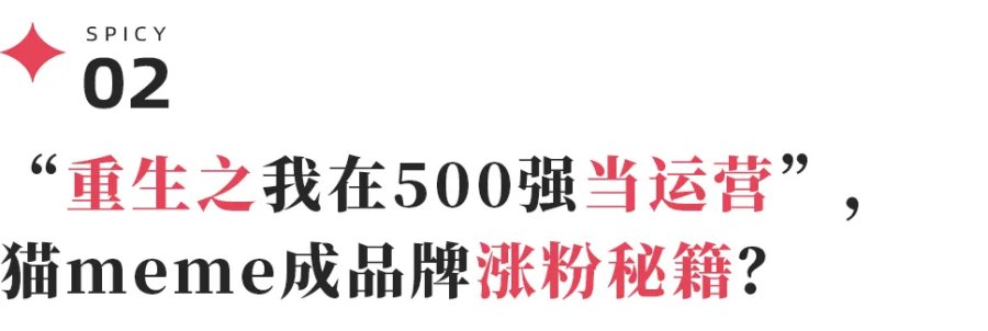 虽然是衍生出的新模版,但品牌猫meme之所以能在社交平台受欢迎,也是因为将猫meme塑造成了嚣张又卑微的00后打工人的形象,并用“带薪摸鱼”、“开心炫饭”、“被领导训话”等同款打工人心态遭遇,成功吸粉。