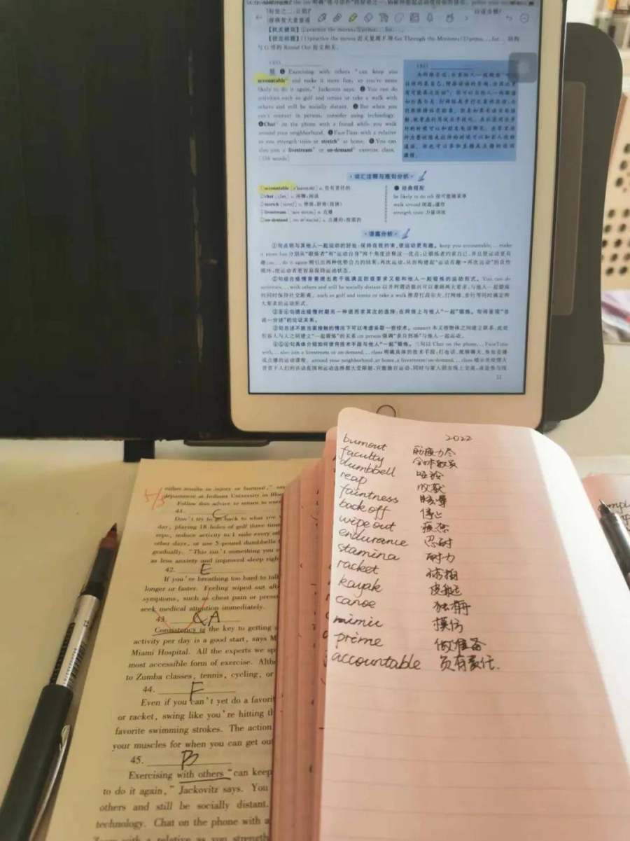 吴开园认为即使准备考研,也不能断了收入来源,所以她选择的是在职备考。所以她除了每天晚上下班到家晚八点到十一点的学习时间外,只能抓紧一切时间“见缝插针”学习。她将专业课笔记电子版导入到微信读书上,然后利用上班通勤的时间来“听书”。在公司,开一些无聊的大会时,插空背几十个单词。