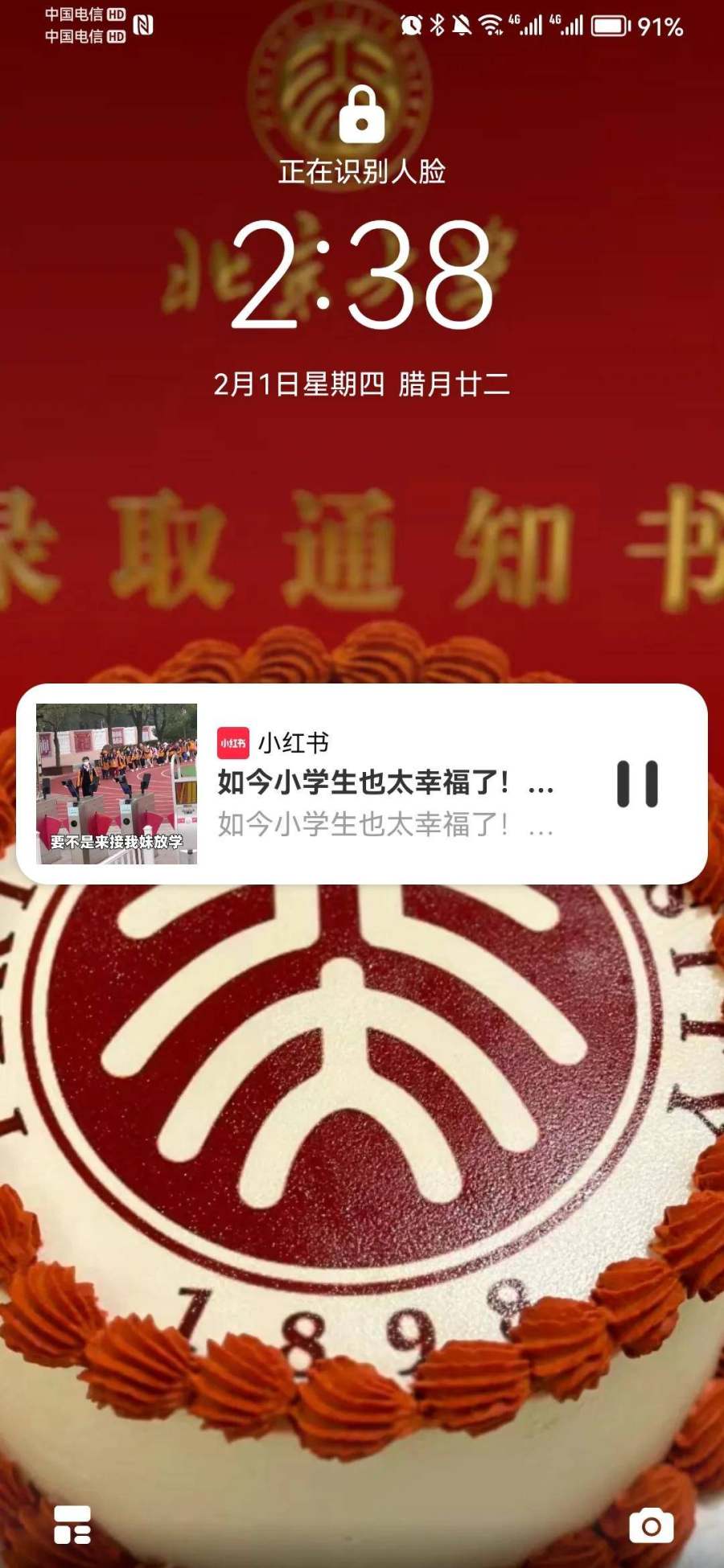 (将北大录取通知书作为自己的手机屏保)