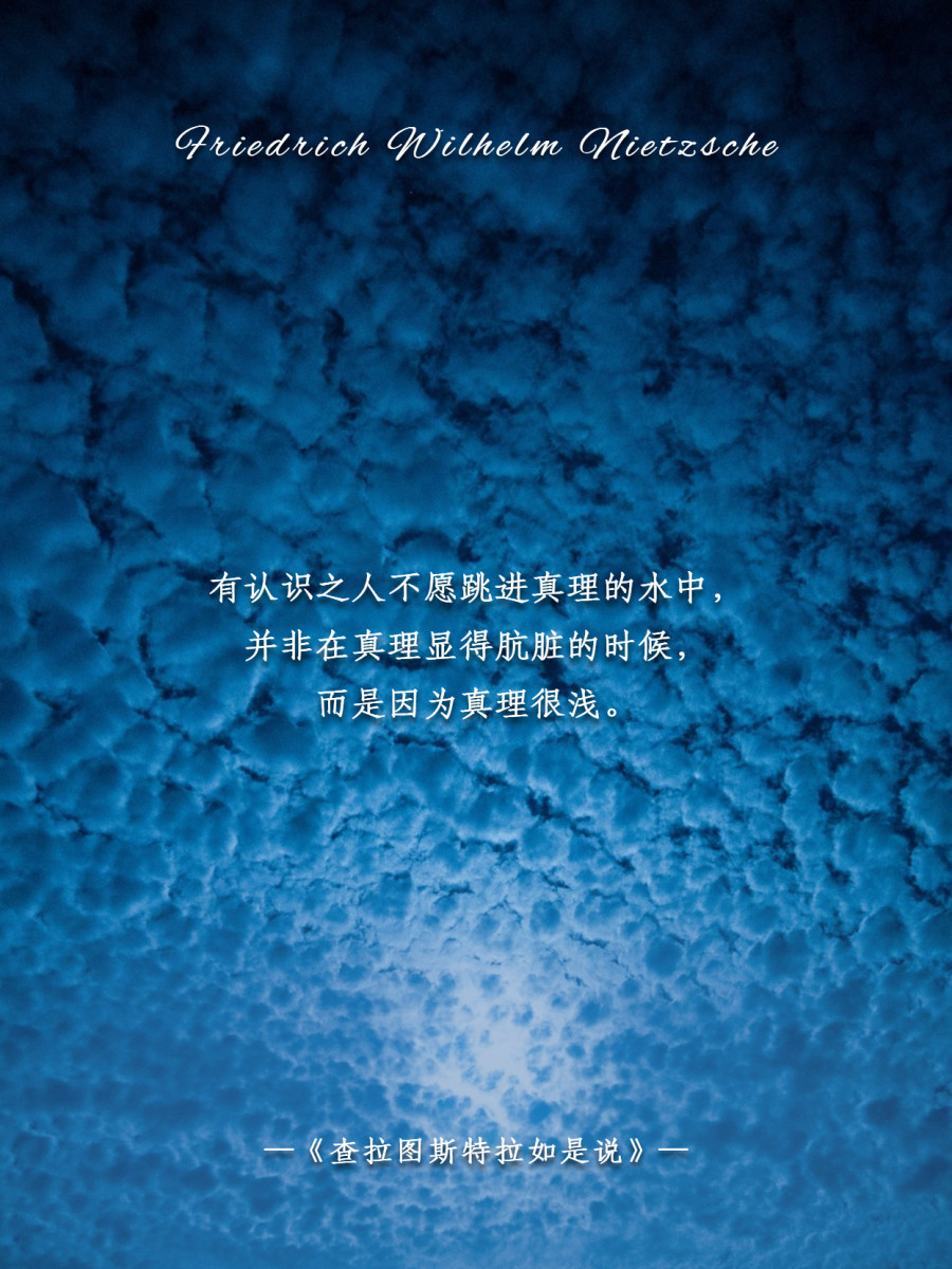 有认识之人不愿跳进真理的水中,并非在真理显得肮脏的时候,而是因为真理很浅。