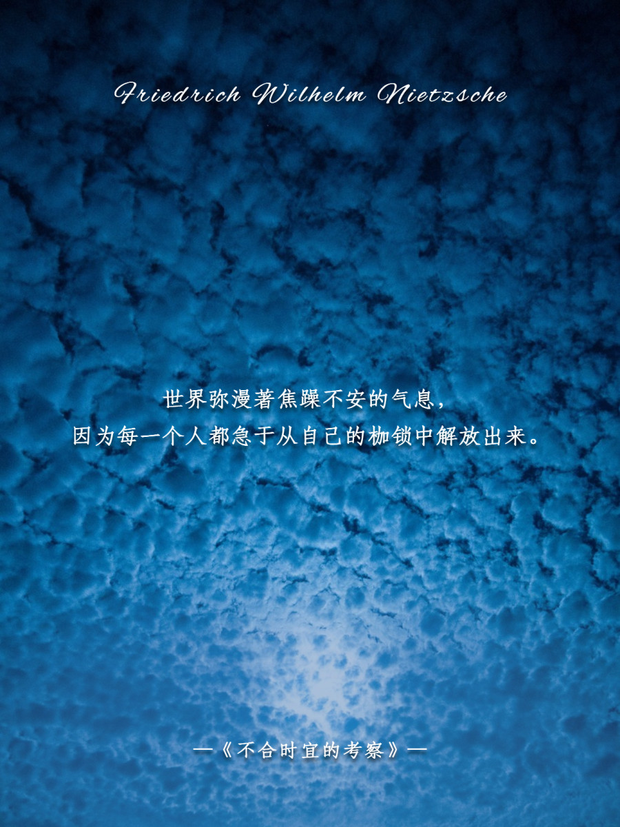 世界弥漫著焦躁不安的气息,因为每一个人都急于从自己的枷锁中解放出来。