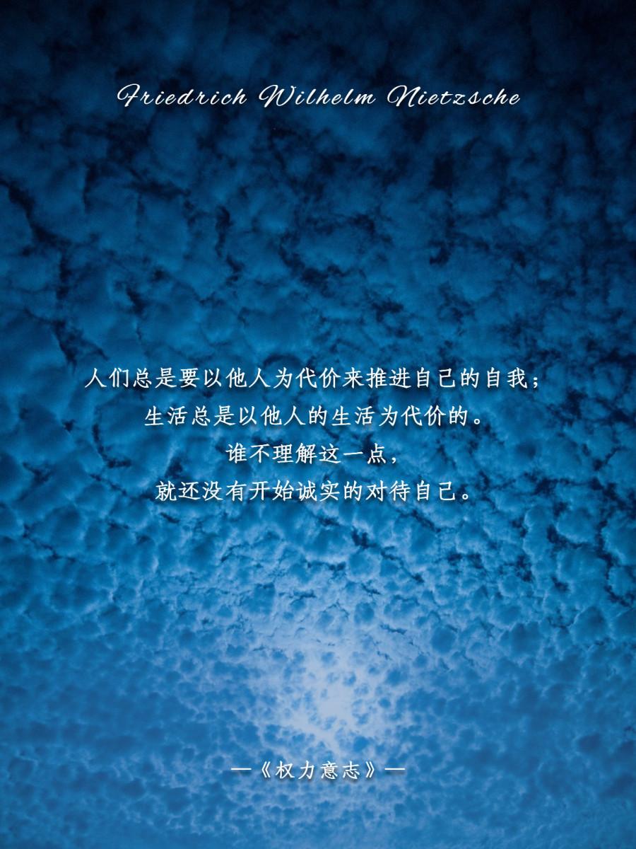 人们总是要以他人为代价来推进自己的自我;生活总是以他人的生活为代价的。谁不理解这一点,就还没有开始诚实的对待自己。