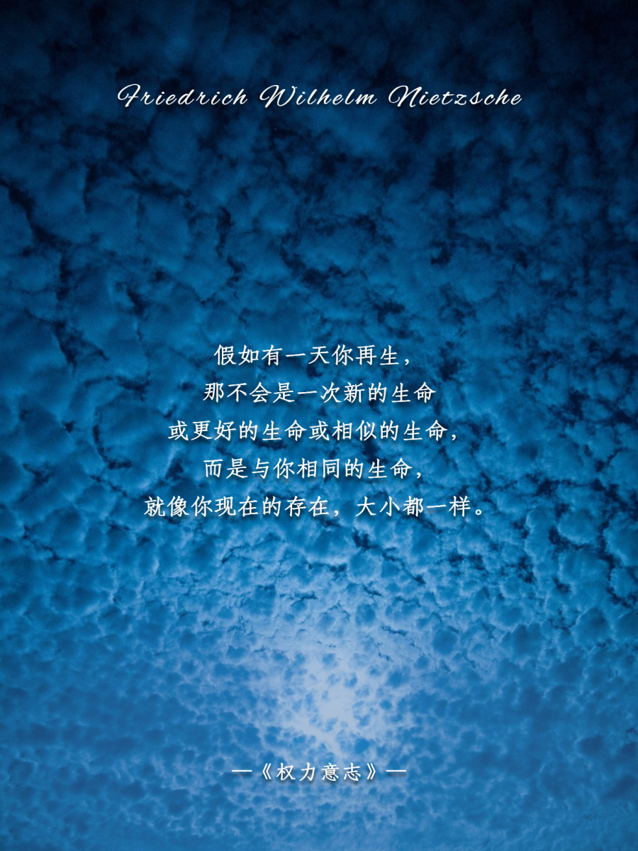 假如有一天你再生,那不会是一次新的生命或更好的生命或相似的生命,而是与你相同的生命,就像你现在的存在,大小都一样。