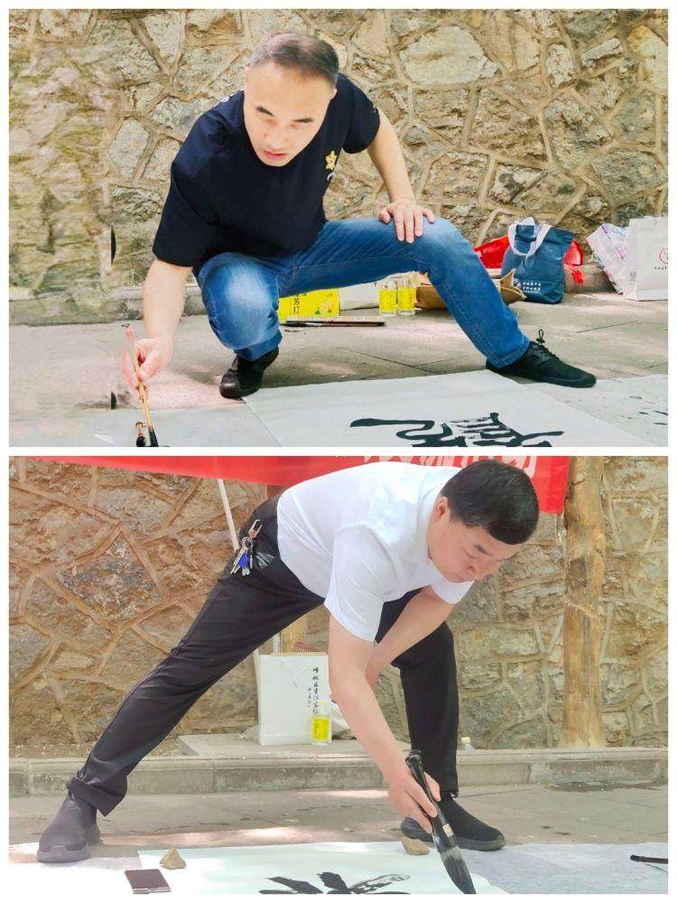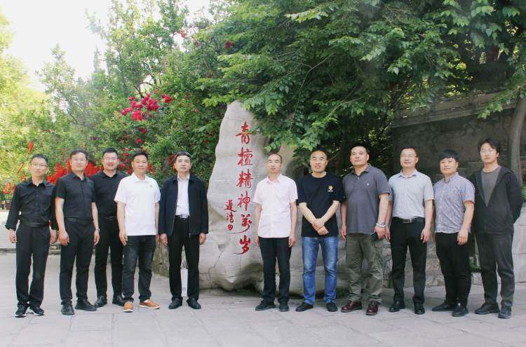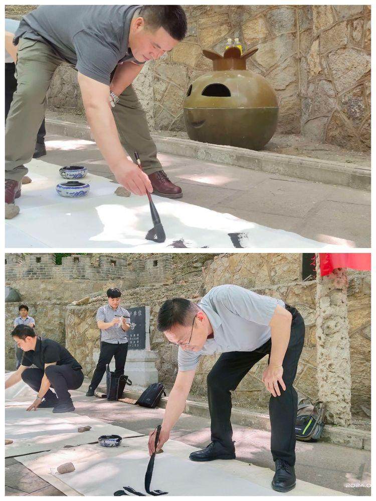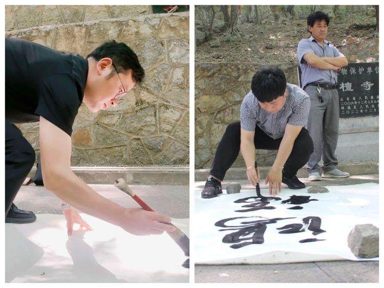 区文联张主席陪同邳州市文联王鹏主席等一行10余人游览青檀寺胜境,参观结束两地书法家挥毫泼墨。