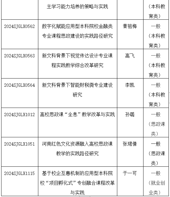 河南财政金融学院获批省级教育教学改革研究与实践项目一览表