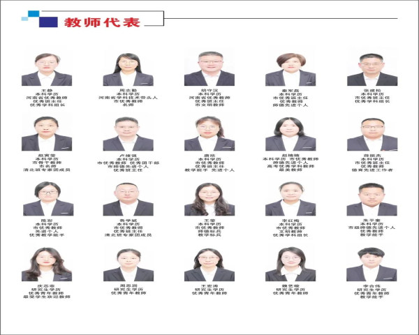 二美// 教师美 做点灯人,教书育人 学校领导班子,学历水平高,业务精湛,年富力强,敢想敢干,具有浓厚的教育情怀,有决心、有信心、有能力把十全高中打造为河南名校。 校长孙剑波,东北师范大学研究生,河南省优秀教师、省名师、省中小学骨干校长,南阳师范学院兼职教授。 副校长杨明阳,山西师大研究生,常年担任省级示范性高中毕业班班主任,培养出大量985、211优秀学子。副校长武捷,硕士研究生,省级骨干教师,国家二级心理咨询师。副校长闫君,市级优秀教师,五一劳动奖章获得者。副校长乔荣蓉,省优秀教师,班子成员均多次获得省、市级表彰。