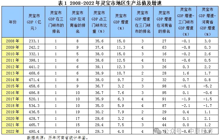 从GDP总量来看,2022年,灵宝市GDP总量为490.4亿元,在三门峡市4个县(市)中排第1位,在河南省102个县(市)中排名由2008年的第8位下降为2022年的第14位。从GDP占比来看,GDP占三门峡市的比重呈先上升后下降趋势,2022年为29.3%。