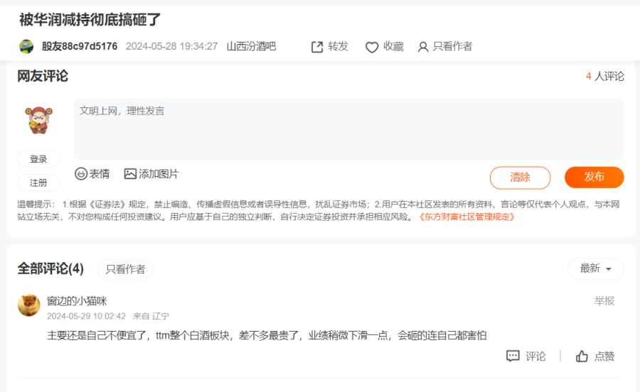 对此,有投资者猜测是华润受房地产影响,急需资金回血,所以才没有等到价格最高点就套现了。