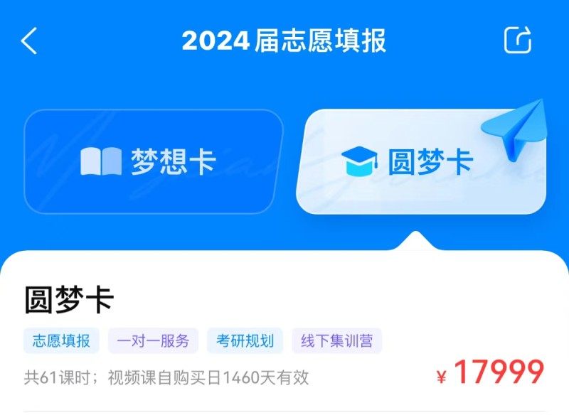 在社交媒体中,不少迷茫的家长会发帖询问报名办法和名额发放时间。蓝鲸记者查询发现,目前张雪峰高考志愿填报服务共分为三档,分别对应不同阶段的高中生,其中2026届收费最低,8999元起。最为紧迫的2024届服务分为11999元的梦想卡和17999元的圆梦卡。虽然价格不低,但有“张雪峰标签”的一对一服务在家长中受到热捧,甚至需要“抢购”。