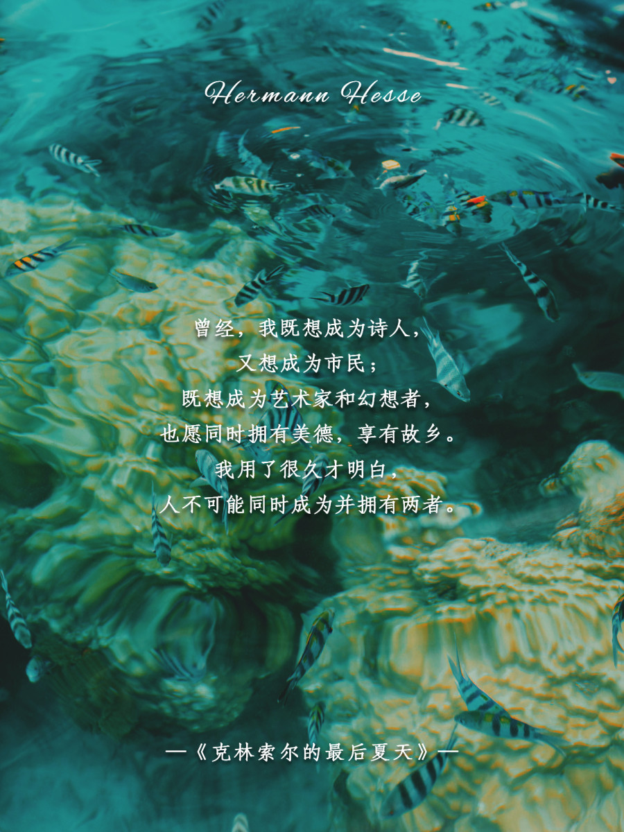 曾经,我既想成为诗人,又想成为市民;既想成为艺术家和幻想者,也愿同时拥有美德,享有故乡。我用了很久才明白,人不可能同时成为并拥有两者。