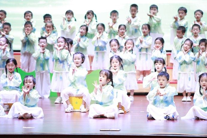第一篇章《初遇见》。何其有幸,生于华夏。孩子们倾心表演《黄河颂》《吃水不忘挖井人》《中国字 中国人》等,用稚嫩的童声诉说对祖国母亲的赤子之情,对中华文明的无限热爱。一幕一景牢记党的恩情,一举一动传承中华精神,一字一句展示汉字魅力,让中华精神、民族文化根植于幼儿心田。