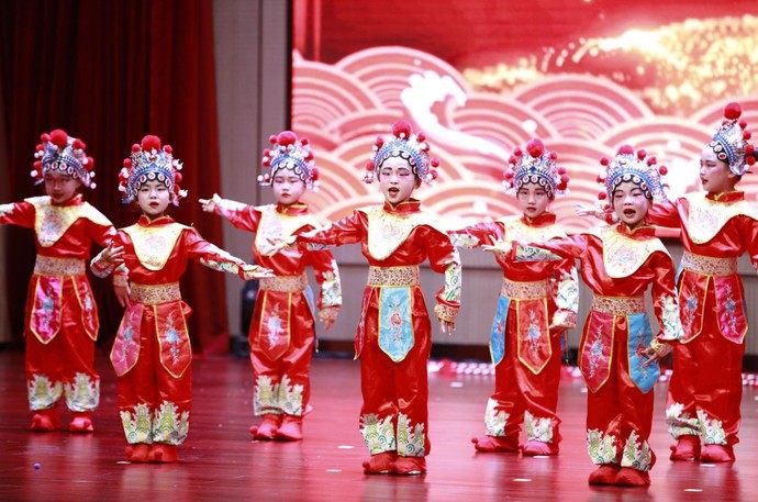 第二篇章《共成长》。无论是弘扬传统文化的豫剧《小小花木兰》,亦或是厚植生态理念的《龙湖鹅 向天歌》《上春山》,又或是构建体育强国的手球表演,教师、家长、幼儿用舞蹈、朗诵、合唱等形式诠释幼儿园十年发展成果,展现高质量惠美课程体系下健康向上、快乐成长的惠美儿童。
