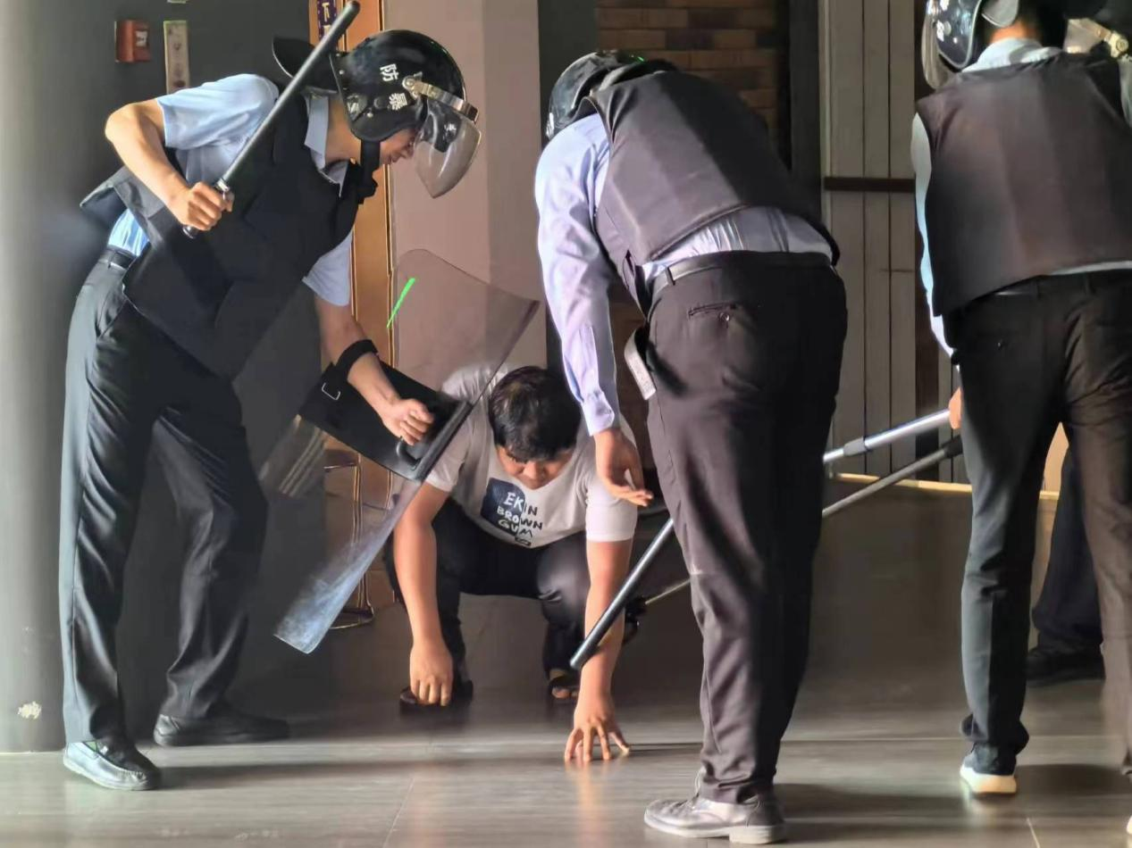 演练设定为商场内一名歹徒持刀劫持并纵火,现场有1名人员受伤导致被困。各参演力量按照“救人第一,科学施救”的处置原则,迅速开启逃生救援,灭火组启用消防灭火器,水枪及时灭火,100余名员工在疏散员引导下弯腰捂住口鼻快速从商场内紧张有序的逃生,安保人员手持防暴工具成功将歹徒制服,最终,“被困人员”被救出,“大火”被成功扑灭,演练取得圆满成功。