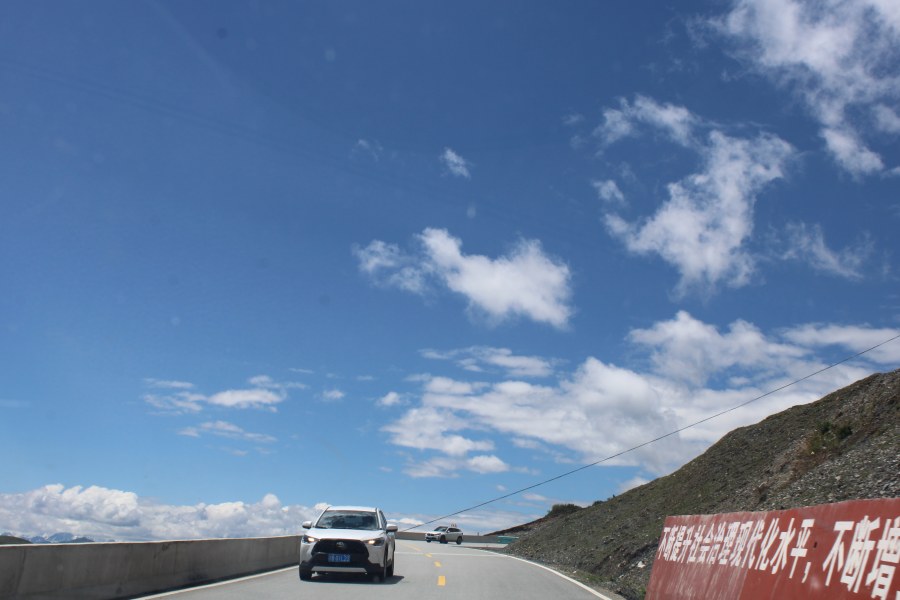 云天之下,山路之上,可能有一点点高原反应的我竟然有一些困。于是在路边睡了一会。