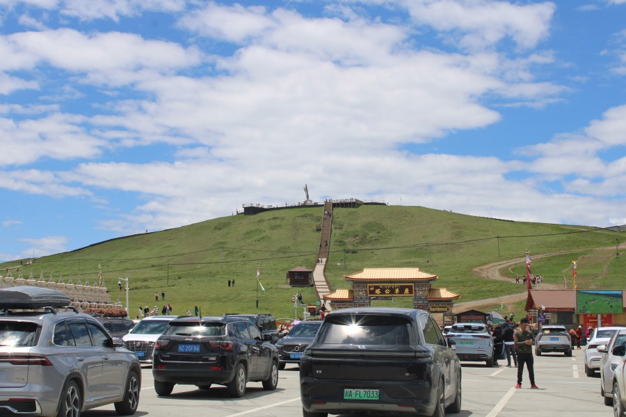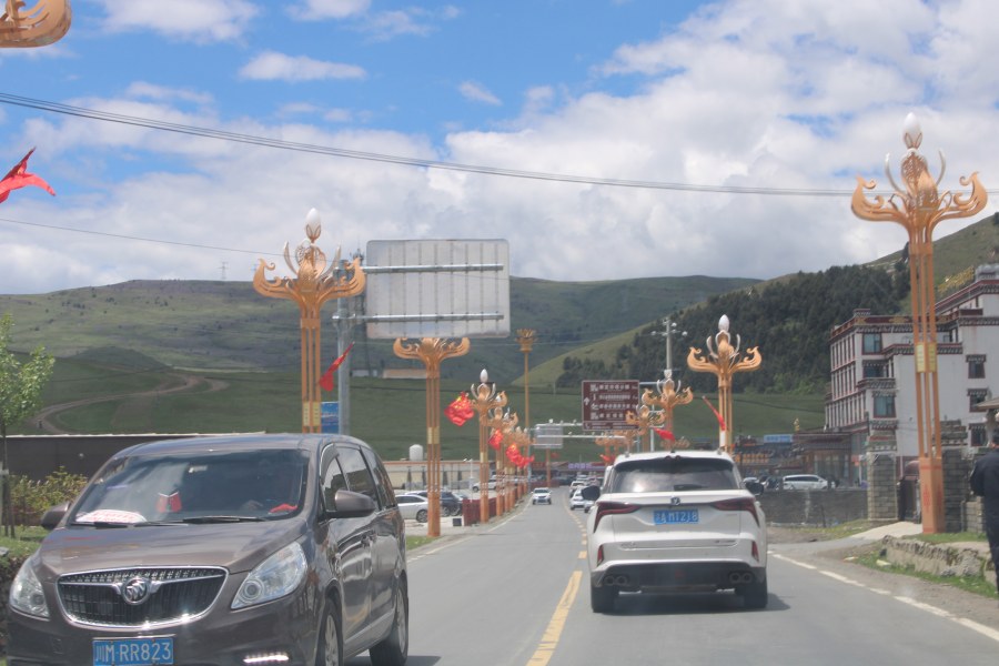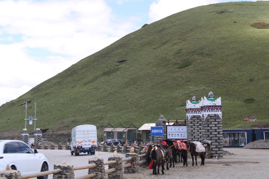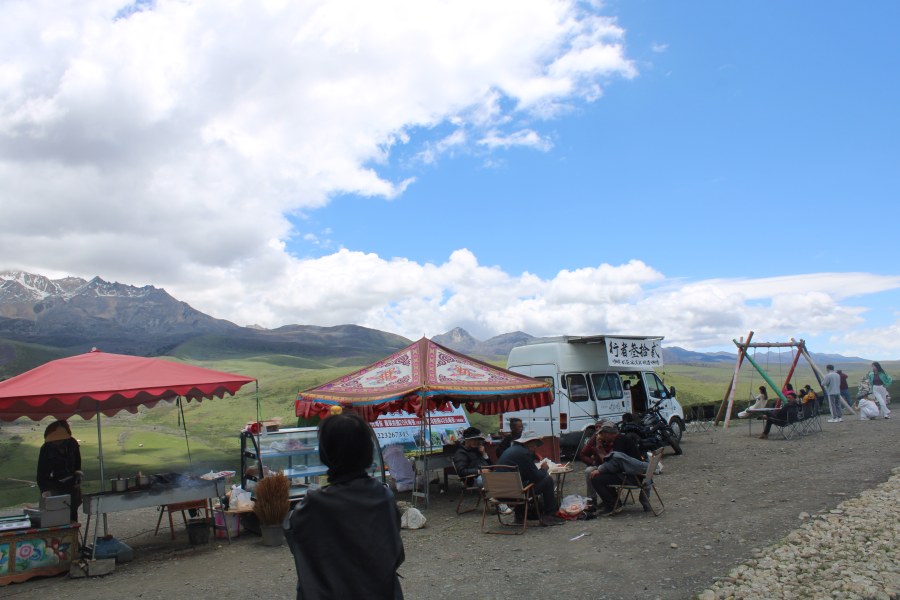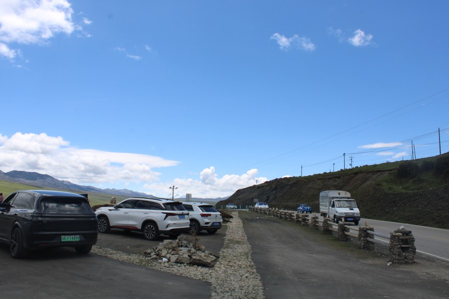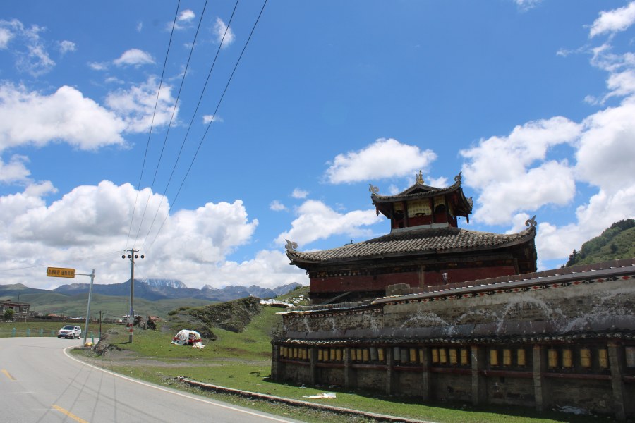 别离了青绕神山,继续前行,在路上看到一些帐篷,旁边还停着一辆小汽车,露营也是蛮好玩的。