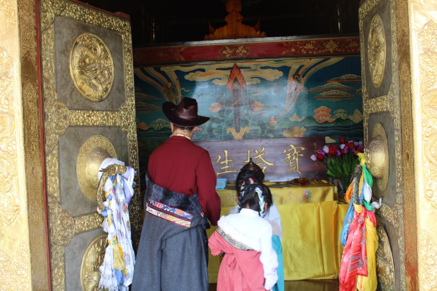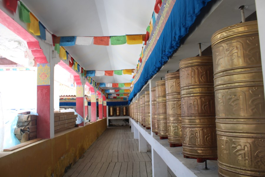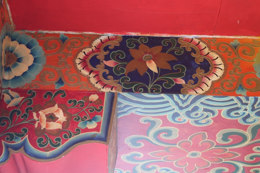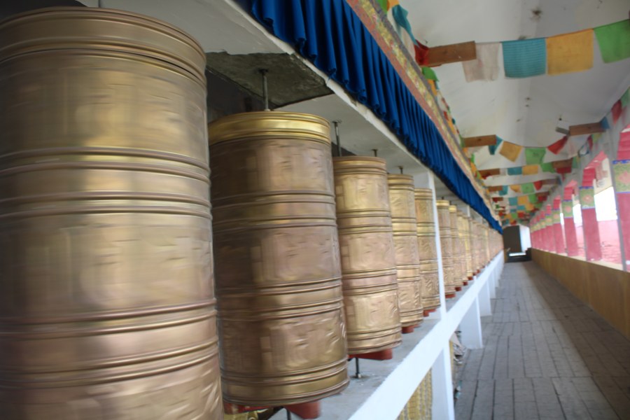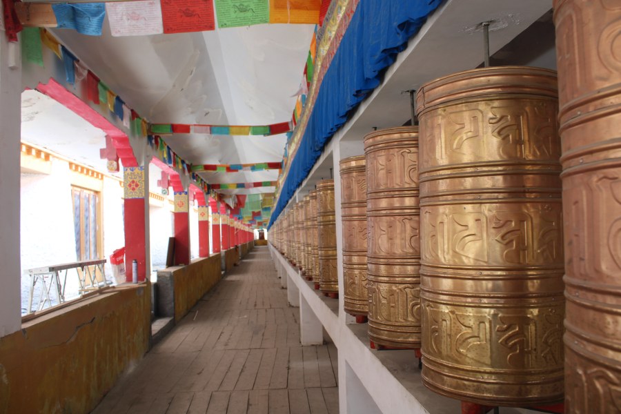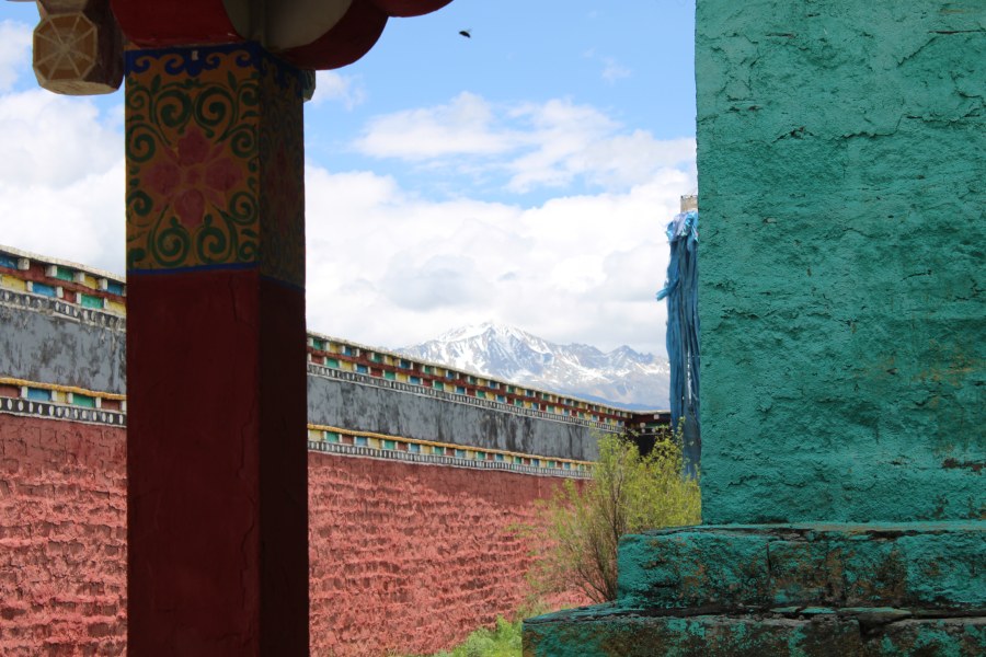 木雅金塔装饰精美,和远处雪山相得益彰,塔内非常清凉,地面一尘不染。