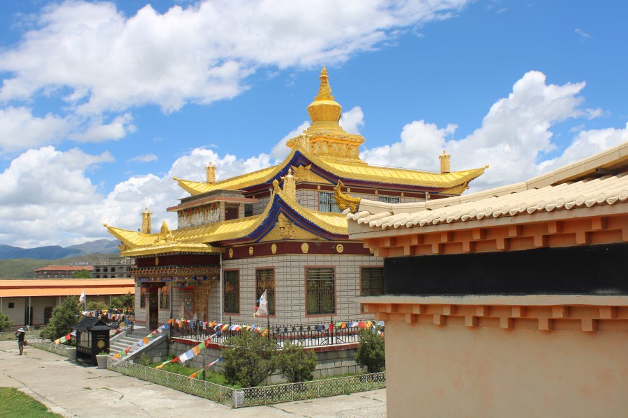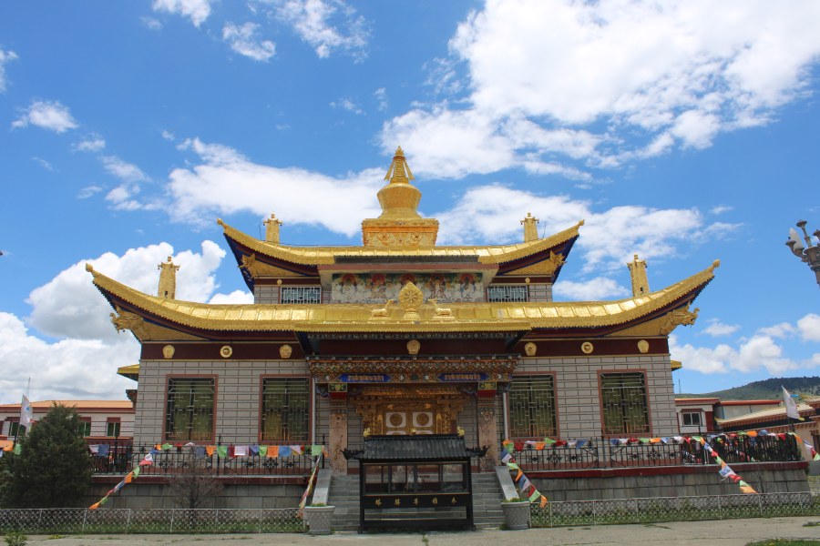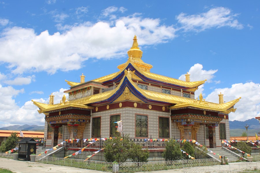 木雅金塔是一座坛城式佛教寺庙建筑,占地35亩。