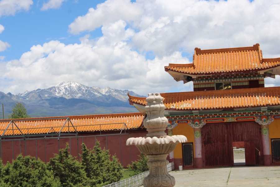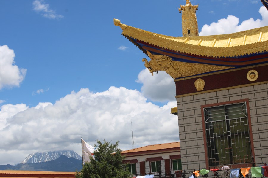 检索了一番之后才知道我还看到了亚拉雪山,此山为“第二香巴拉”。所谓香巴拉,就是神仙居住的地方,“第二香巴拉”就在眼前。木雅金塔就在身边,门票十元钱,是西康福利学校办学经费的主要来源之一。