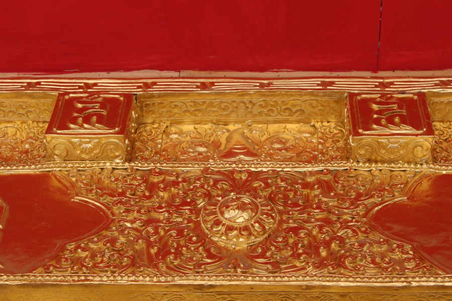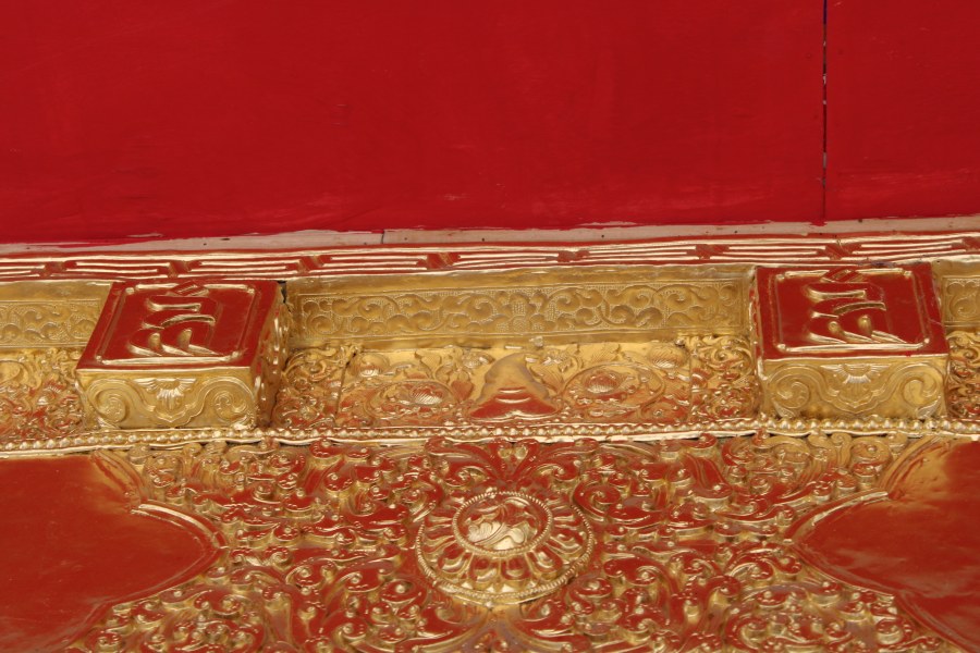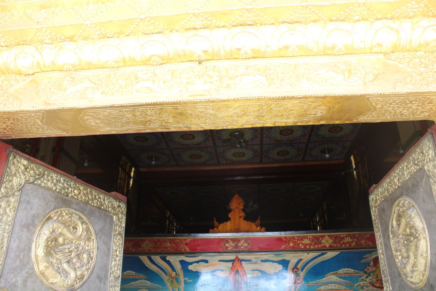 门梁、门框、门身种种装饰让人叹为观止,旁边有提示不让触摸金饰,但应该也没人会触摸。