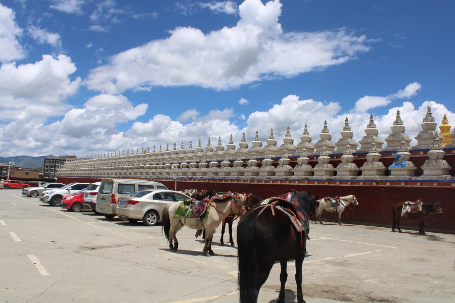 从康定出发,走318国道,开两个多小时,越过折多山就到了塔公草原。海拔四千五百多米,让我这个从云贵高原来的人都有点吃不消,发动机由于加入燃烧的氧气减少油门也感觉没有力量了。