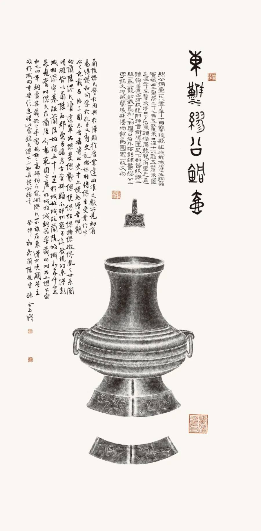 跋二:兰陵缪氏,肇于周,兴于汉,显于晋,业达两淮。文献所见初有《易传》缪和问学于孔子,又有《史记·儒林列传》缪生受业于申公之记载。另外《三国志》《晋书》等正史中,汉晋时期的兰陵缪氏 ,贤达辈出。 缪斐、缪袭、缪悦、缪绍、缪播、缪徵、缪胤之世系关系,皆以兰陵为郡望。另据考古资料显示,邳州燕子埠发现的东汉彭城相缪宇墓距兰陵故城仅五十里,柞城故城距兰陵故城亦五十里,足见当时缪氏在兰陵分布范围之广大。柞城故城铜器窖藏同时出土缪公壶和元和四年铜壶,其藏器之丰富、规格之高端,均可窥测缪氏家族在东汉中晚期曾主政柞城的重要信息。惜此壶铭文『缪公』不知具体所指矣。癸丑初冬兰陵后学孙合玉识