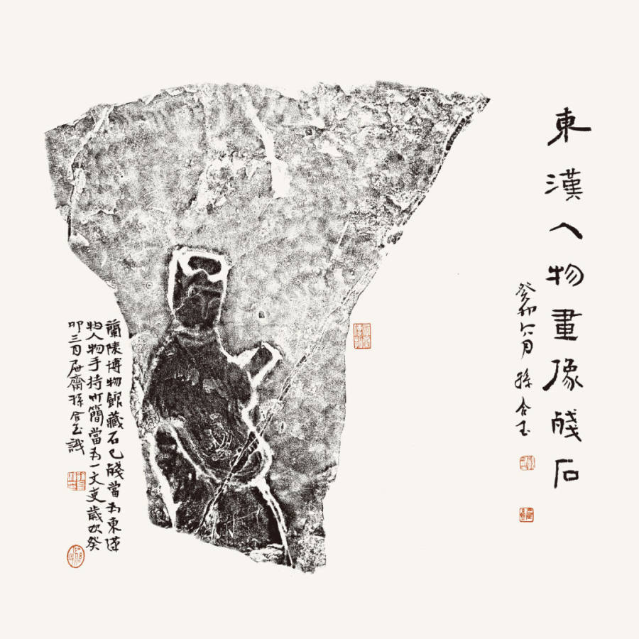 题耑:东汉人物画像残石兰陵博物馆藏,石已残,当为东汉物。人物手持竹简,当为一文吏。岁次癸卯三月,屉斋孙合玉识