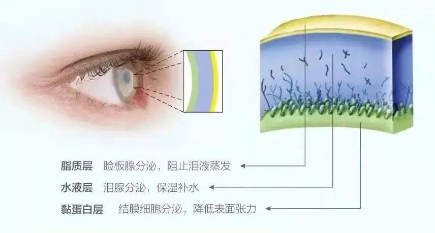正常人的健康泪液并不仅仅有水液层,还有脂质层和黏蛋白层,这些成分的异常,或更多因素的混杂失常,都可能引发干眼,大家可不要把“干眼”和普通的“眼睛干”搞混了哦!