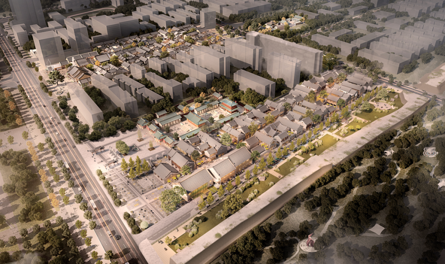 宽窄各异的街巷不仅形成了独特的视线通廊,还让历史遗存与整个街区和谐共生。具有中原传统风貌特色的街区与城垣遗址、文庙之间形成了自然的过渡与延伸,建筑与空间秩序得以传承与延续。