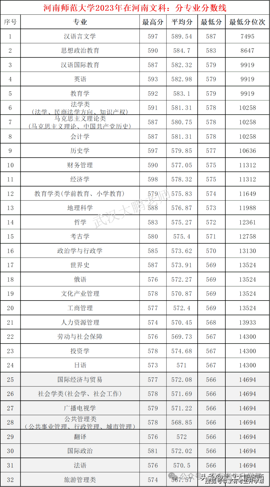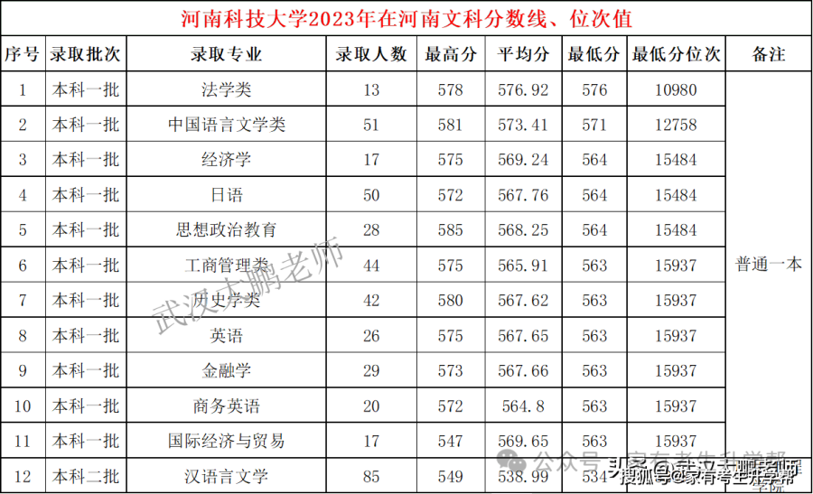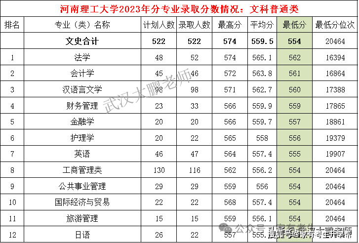 河南理工大学各专业2023年在河南文科分数线、位次