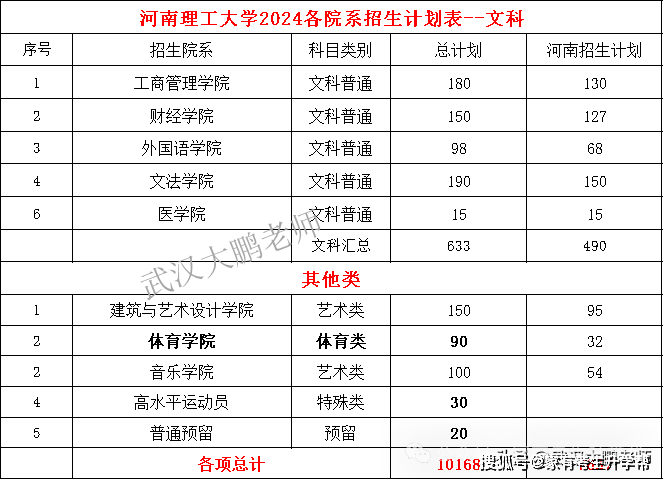 河南理工这4对河南理科招生6966人、减招62人;文科招生490人、减招60人;艺术类95人、体育类32、音乐学院54人;