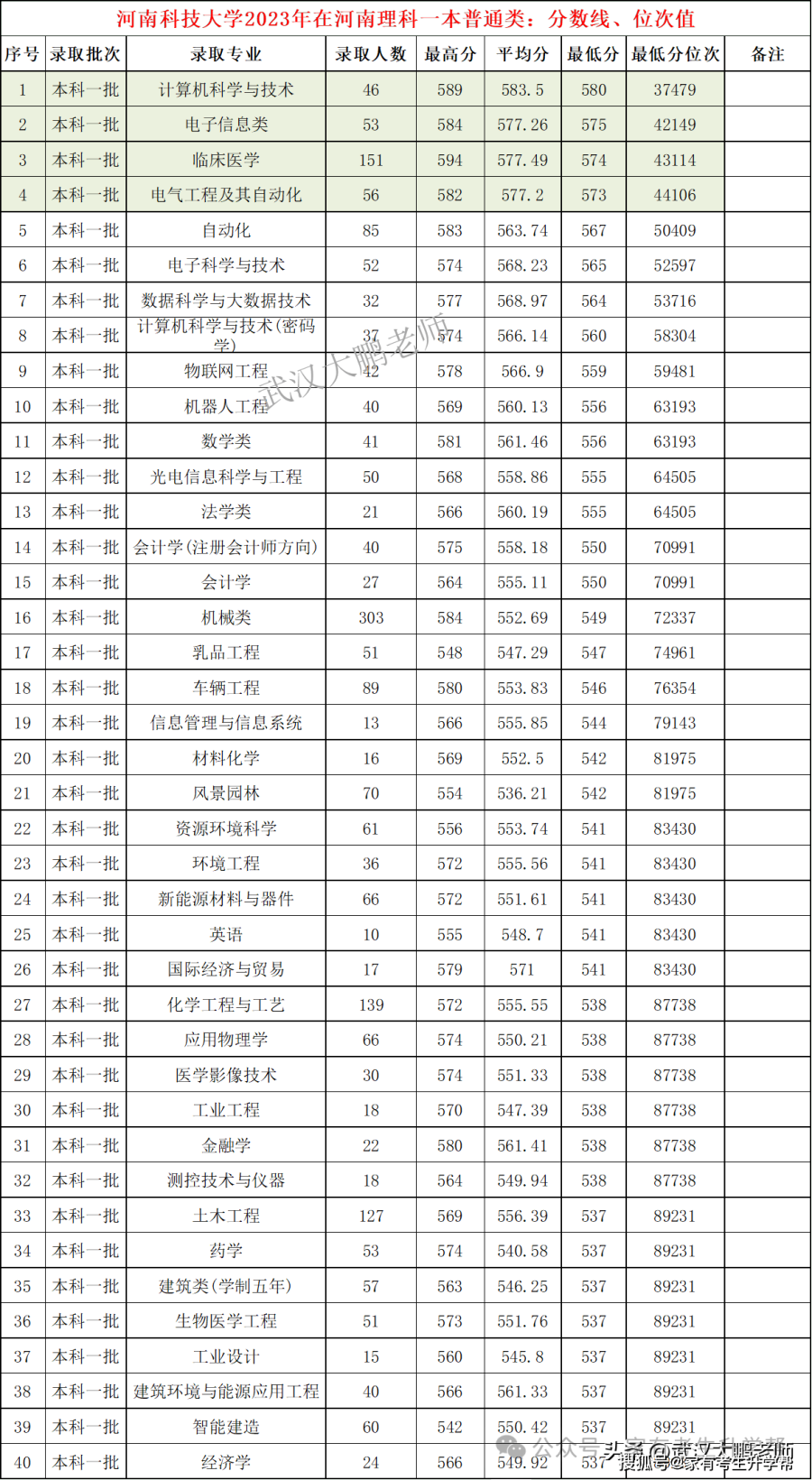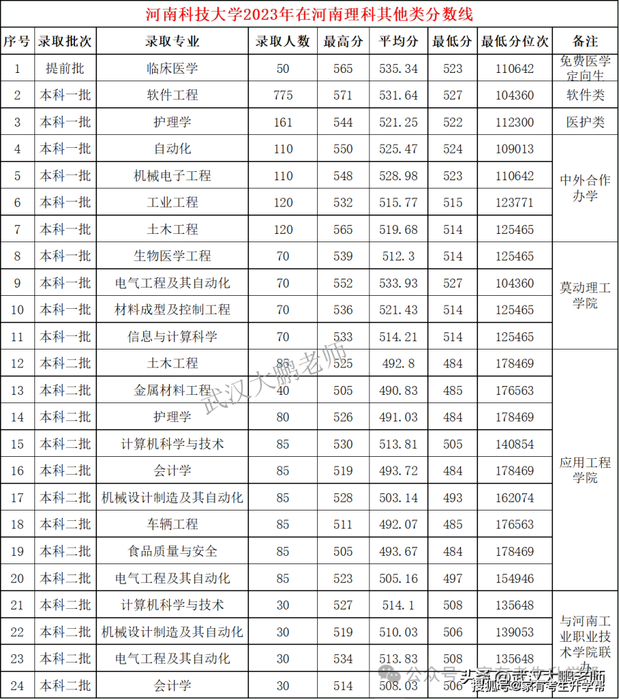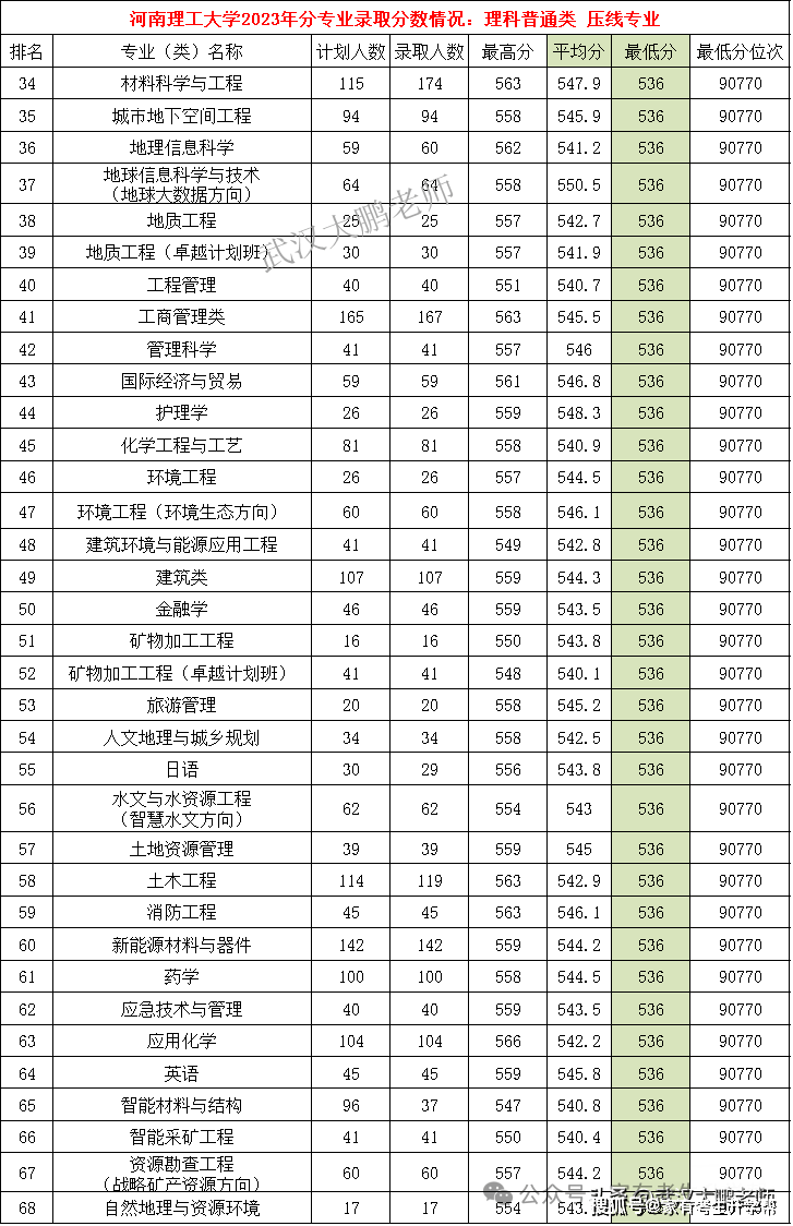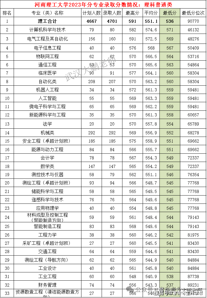 河南理工大学各专业2023年在河南理科分数线、位次