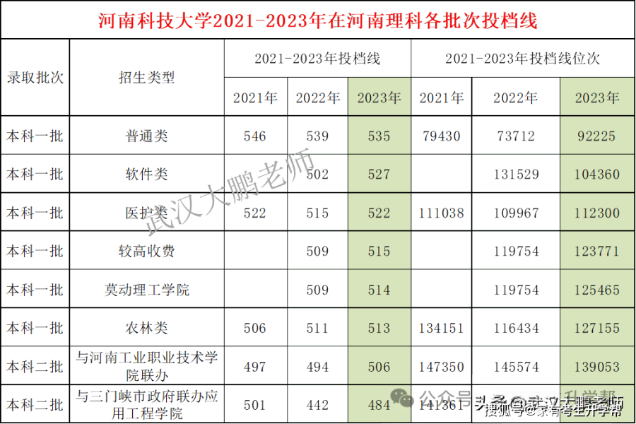 河南科技大学2021-2023年在河南理科投档线