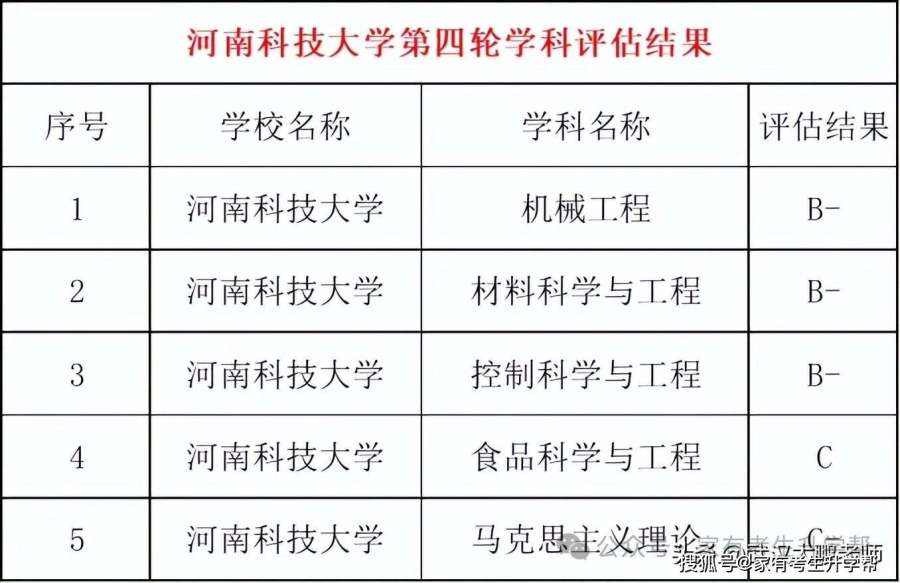 从第四轮学科评估结果来看,河南科技大学最优势的学科是机械工程和材料科学与工程、控制科学与工程3个B-专业。与河南理工、河师大、河农大相比学科实力稍逊一些。