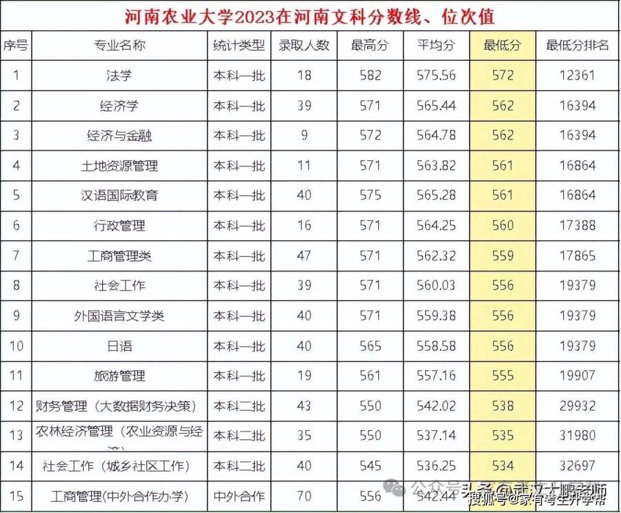 河南农业大学2023在河南文科各专业分数线、位次