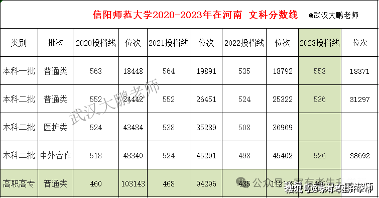 信阳师范大学2020-2023在河南文科投档线